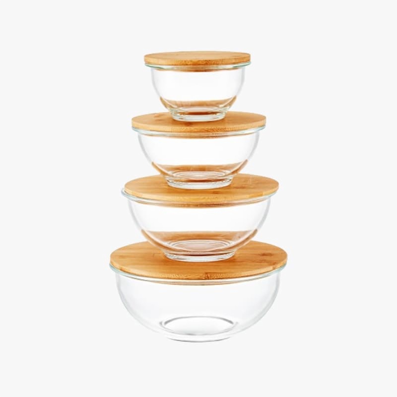 Innovative Design & Exquisite Craftsmanship】Feemio’s Glass Mixing Bowl with Bamboo Lid features a sleek, modern design that combines elegance with practicality. Its smooth curves and polished finish make it visually appealing for both home and commercial kitchens.