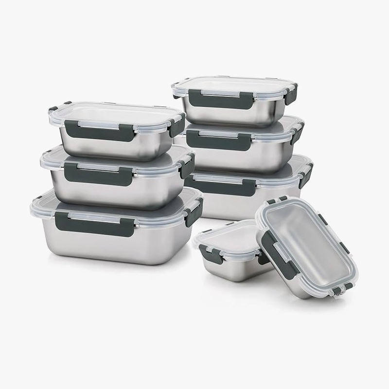 4.【Secure Locking Clips & Carry Handle】Designed with strong side locking clips and a convenient top handle, this stainless steel tiffin box is easy to carry to school, work, travel, or outdoor activities. The secure structure keeps containers tightly in place during transport.