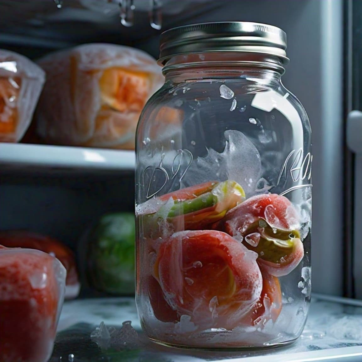 Regular mason jars are durable enough to be put into a cold fridge or freezer. While mason jars can be frozen successfully, the foods that go into these jars must be frozen in upright jars that do not have shoulders, meaning they should not be jars that curve just under the neck. Flocculation occurs when the food is frozen, which may pressure the jar, leading to cracks.